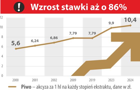 Wysoka akcyza na piwo w Polsce jest efektem systematycznego podnoszenia stawek na przestrzeni ostatnich 2 dekad. Od 2000 roku stawki wzrosły o 86%. W analogicznym okresie czasu akcyza na wyroby spirytusowe wzrosła jedynie o 26%.