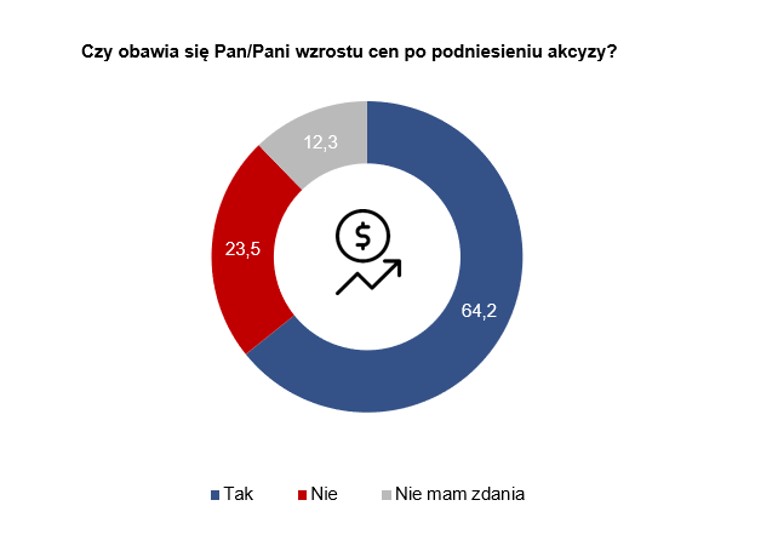 Zdecydowana większość respondentów (64,2 proc.) obawia się, że podniesienie stawek akcyzy doprowadzi do wzrostu cen.