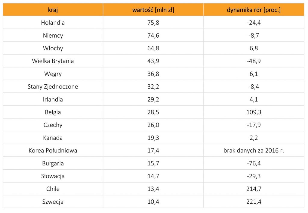 Tabela 1 – Główne kierunki eksportu piwa z Polski w 2017 r.